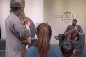 有心了!球迷现场演唱为詹姆斯创作的rap 老詹主动与其握手