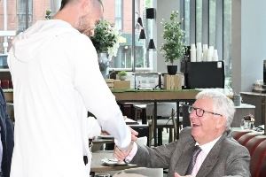 赛前,弗格森与德赫亚共进晚餐,两人满脸笑容拥抱热聊。